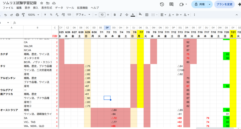 また、ボルドーのシャトーが一次試験の登竜門、という話をどこかで聞きかじり、実戦講座前にボルドーシャトーだけは覚えました。夫にシャトーの名前を読み上げてもらい、私が村と級を答える、というクイズ形式で、アウトプットメインの暗記方法を取りました。